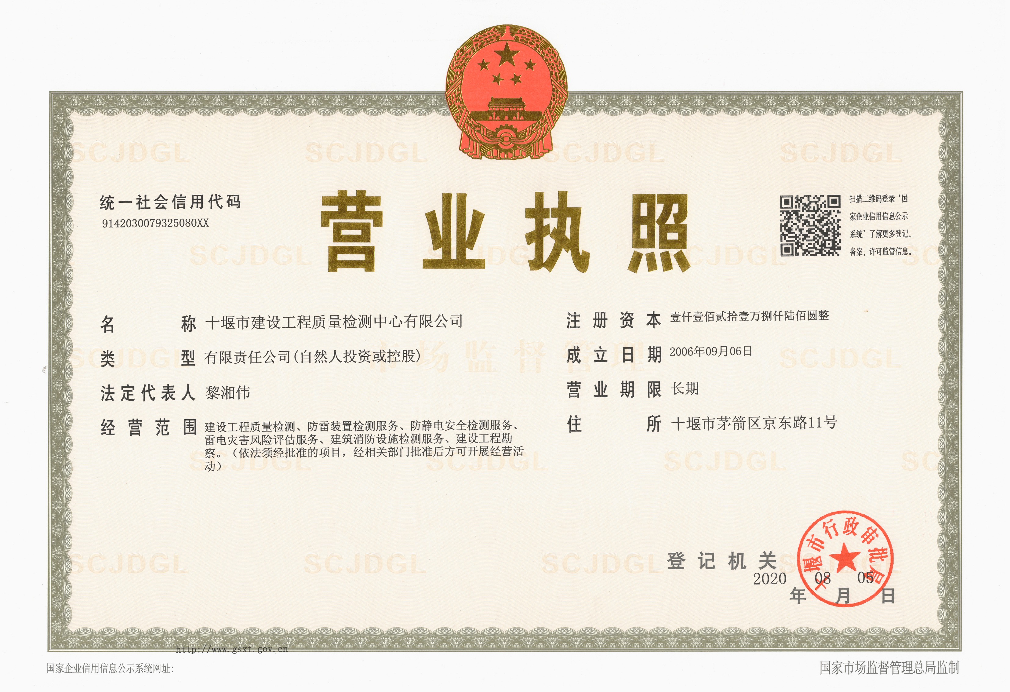公司前身為十堰市建設(shè)工程質(zhì)量檢測(cè)中心(2006年成立),于2017年4月按國(guó)家、省、市要求完成改制,企業(yè)類型為有限責(zé)任公司,公司法人、執(zhí)行董事為黎湘?zhèn)ァ?br />